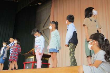 【2年生】劇の練習 公開日 2020/10/01 更新日 2020/10/01 2年生 ステージを使って体育館で練習をしていました。大きな声で動きをつけて頑張っています。最初の頃よりずっと上手になりました。