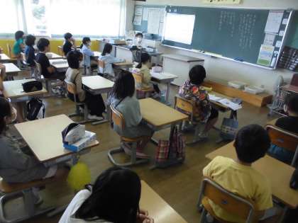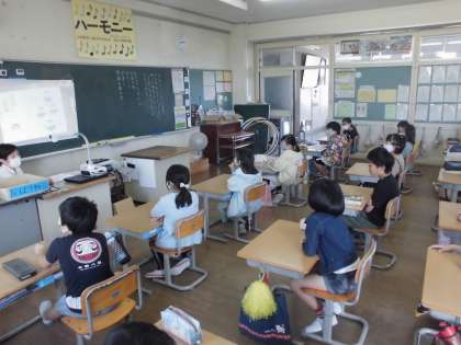 【3年生】読み聞かせ 公開日 2020/10/02 更新日 2020/10/02 3年生 今日は、スクールサポーターの先生に、「てとてとてとて」の本を読んで頂きました。手はいろんなところで使っていることを本を通じて、知ることができました。