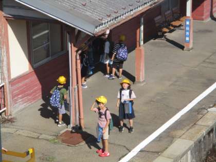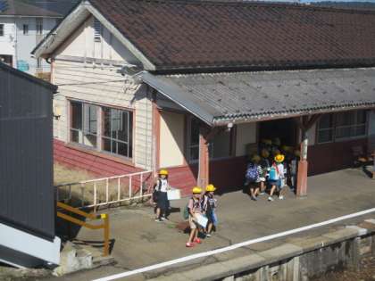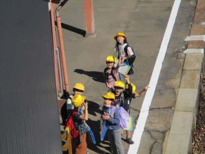 高架橋の向こう側からこちらに向かって手を振る子供たちです。線路を上から眺めることもあまりないので、楽しい経験になったと思います。