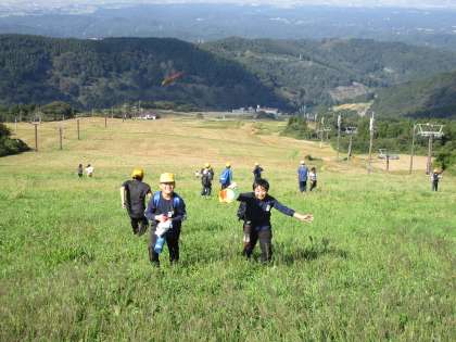 バスに乗る前、短い時間ですが原っぱを散策したり、展望台にのぼって景色を見たりしました。