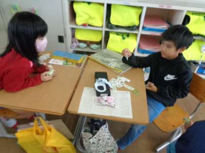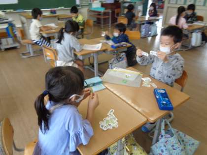 繰り上がりのたし算の学習も進んできました。今日は計算カードを使って問題を出し合ったり、大きさ比べゲームをしたりしました。頭の中で「10といくつ」がすぐに出るように毎日計算カードをがんばりましょう!今、しっかり身に付けることが大切です。