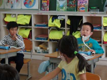 いよいよ鍵盤ハーモニカの学習が始まりました。今日は少しだけ音を出してみました。