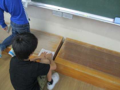 最後の重い机の整頓は大変な作業ですが、最後はみんなで一緒に協力してきれいに並べました。本当にぴかぴかになりました。気持ちよく教室が使えます。とっても嬉しいです。