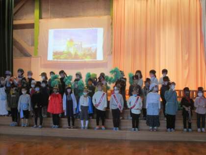学習発表会まで今日であと4日となりました。今日は本番と同じ衣装を着て最初から最後まで通して練習を行いました。初めて練習をした頃と比べてどの子も堂々と発表できるようになってきました。残りあと数日の練習も気を引きしめて取り組みましょう。