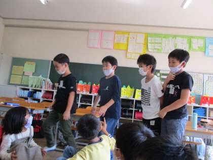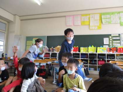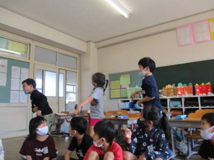 今日は教室でできる遊びをみんなでしました。「いらっしゃ〜い」という輪になってするまねっこ遊びです。