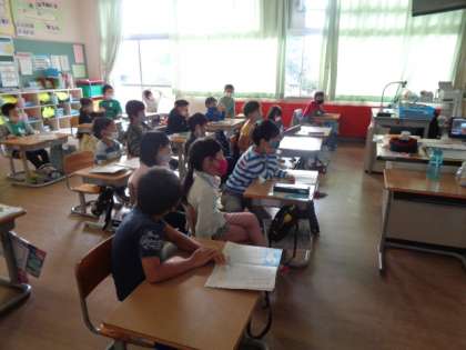昨日の自分たちの劇を映したビデオを観ました。自分の演技の様子を客観的に見て、「もっと頑張りたい!」とたくさんの子供たちが改善点を見付けることができました。練習できるのは明日が最後です。頑張りましょう!