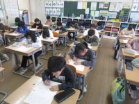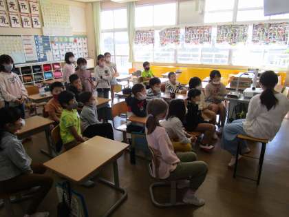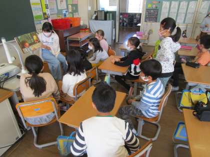 【3年生】読み聞かせ隊の読み聞かせ 公開日 2020/10/16 更新日 2020/10/16 3年生 今日は読み聞かせ初チャレンジの友達が「ポチポチのとしょかん」を読んでくれました。何日も前から練習を行い、登場人物によって声色を変えるなど工夫して上手に読んでくれました。みんなも静かに真剣に聞いていました。