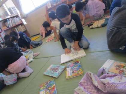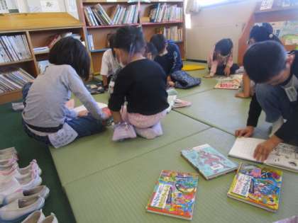 春と比べて1年生の選ぶ本が変化してきました。今までは全てひらがなだった本も最近は漢字が混ざった本も選ぶようになりました。子供たちの成長を実感しました。