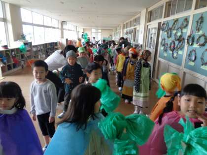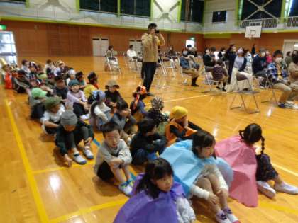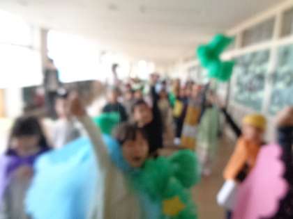 声出しをして、衣装を整えて、いよいよ整列です。ドキドキするけど、みんなで力を合わせて、今までで最高の演技をしようと「エイエイオー」をしました。(写真はブレてしまいました)「いい発表会にしたい」という思いは一つです。