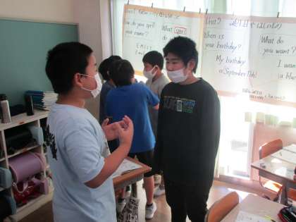 Can you 〜?の表現を使って、友達とできることやできないことについてやりとりをしました。そこから会話を広げる子供たちもいます。なんとかして伝えようとする姿は良いものでした。