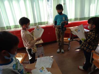 グループになって音読しました。