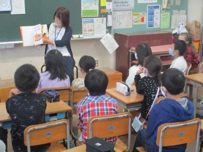 今日は、読み聞かせボランティアの方に「おじいちゃんのごくらくごくらく」を読んでいただきました。自分の祖父母のことを思い浮かべながら、聞いていたのかな。