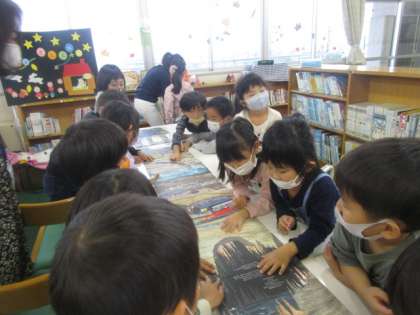 机の端から端までよりも長い絵本もありました。子供たちは、読むのが大変だね!楽しいな!といった感想を持って楽しんで本を読んでいました。