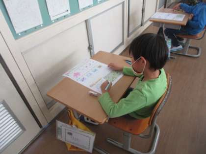 【1年生】テストをしました。 公開日 2020/10/27 更新日 2020/10/27 1年生 算数の『かたちあそび』のテストをしました。子供たちは、「かたちあそびの勉強、これで終わりなの」「もっとやりたかった」と、とても残念そうでした。明日からは新しくくり下がりのある引き算です。難しい問題もありますが一緒に学習していきましょう。