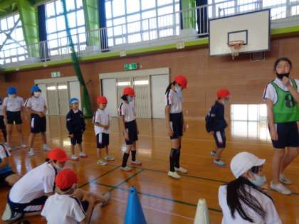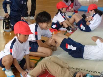 なかよし班に分かれて、6種目を計測しました。お兄さん、お姉さんに教えてもらいながら楽しく回っていました。