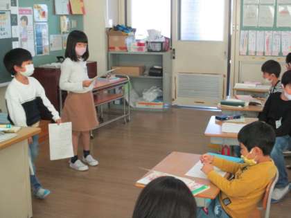 【2年生】音読をしてみよう 公開日 2020/10/27 更新日 2020/10/27 2年生 お手紙では、登場人物になりきって音読をしてもらいました。 声の大きさや高さに気を付けて、自分なりの音読を、楽しみながら発表してくれました。
