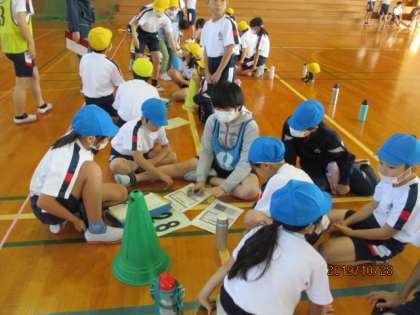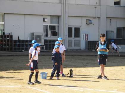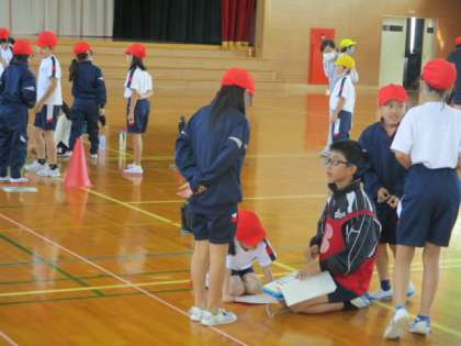 今日、全校の子供たちは、なかよし班ごとに体力テストを行いました。今年初めてのなかよし班活動です。6年生は、リーダーシップを発揮し、下級生を引率したり、並ぶように声をかけたりするなど、リーダーシップを発揮して活動する姿が多く見られました。