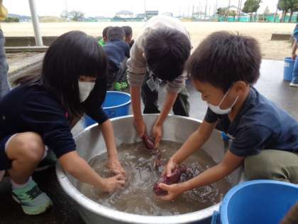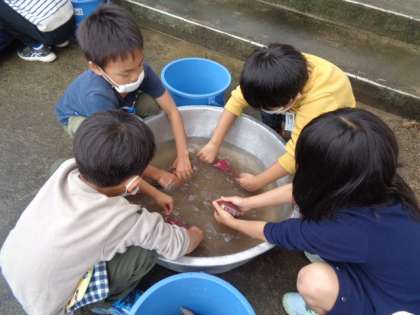 きれいなピンク色になるまで、手が冷たくなってもがんばりました。
