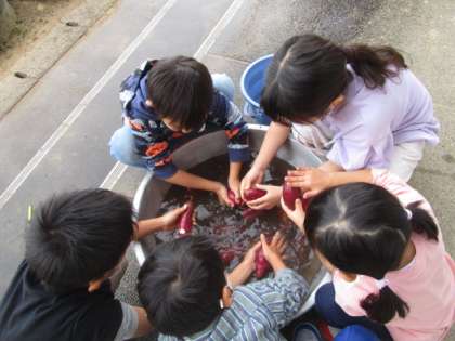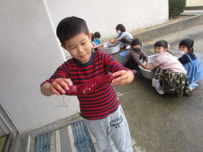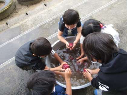 活動の様子です。ピカピカのサツマイモになりましたね。