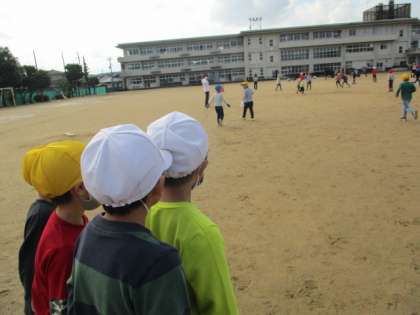 やきいもができあがるまでは、1、2年生でけいどろをして遊びました。4回戦もしましたが子供たちは元気いっぱいです。