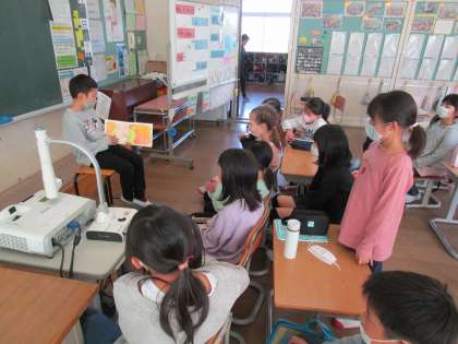 今日は、「ぼくがおっぱいをきらいなわけ」という絵本を読み聞かせてくれました。読んでくれた子は「おもしろい本だよ」と教えてくれていたので、楽しみにしていました。読むごとに笑い声が上がり、クラスの子供たちは本に夢中でした。