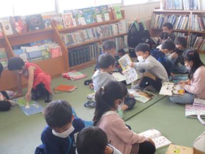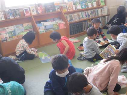 先週の金曜日にあった読書フェスティバル後、初の図書室利用でした。子供たちは読書フェスティバルの経験を経て選ぶ本も変化していました。お友達と一緒にクイズを出し合ったり、間違い探しをしたり楽しそうに本を読んでいました。