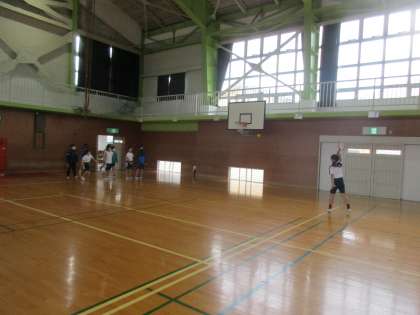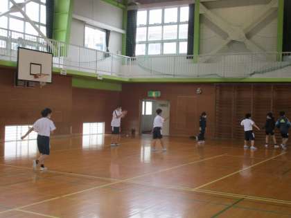 体育館での学習も、肌寒くなってきました。今日はベースボール型ゲームの最初の時間として、ボールを投げたりラケットで打ったりしました。