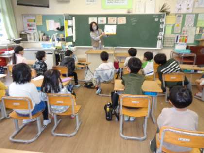 今日は「どうぶつのたいじゅうそくてい」と「ロージーのおさんぽ」を読んでいただきました。象の体重は5600キロ!クジャクの体重は5キロ!子供たちは大いに驚きながら興味津々に絵本を楽しんでいました。