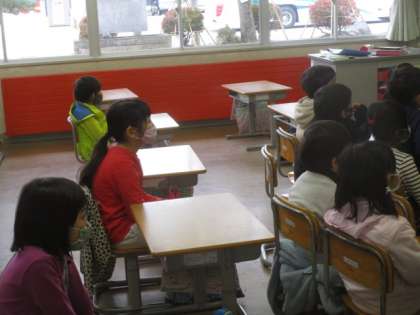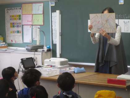朝の読み聞かせで日本昔話の紙芝居を読んでもらいました。物語の中では山姥がでてきて、子供たちは恐ろしい山姥に少し驚いている様子でした。しかし、楽しそうにお話を聞いていました。