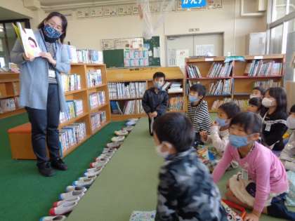 【1年生】図書の時間 公開日 2020/11/06 更新日 2020/11/06 1年生 今日は虫歯の絵本を読んでいただきました。プラークの中にミュータンス菌がたくさんいることを教えてもらいました。今日も本を持ち帰りました。週末、家族で本を楽しんでください。