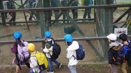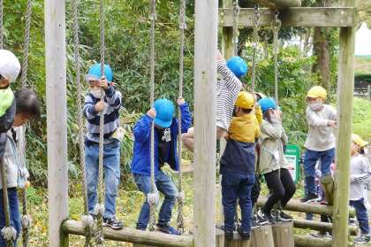 午後も少し動物を見た後、森の冒険エリアというところで遊びました。自然のものを使ったアスレチックで、普段公園にあるような遊具とは少し変わっていました。ちょっと難しいレベルのアスレチックもあり、子供たちは思い切り体を動かして楽しんだようです。