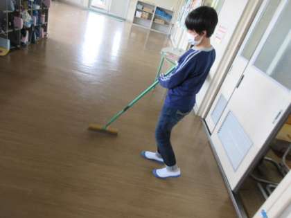 清掃の様子です。清掃場所が変わる月曜ですが、集中して取り組みました。