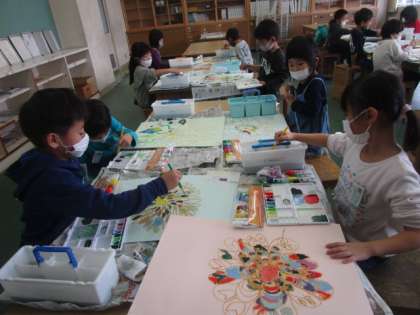 世界に一つだけの花の色塗りが完成しました。カラフルで見ていて元気が出てくる絵に仕上がりましたね。