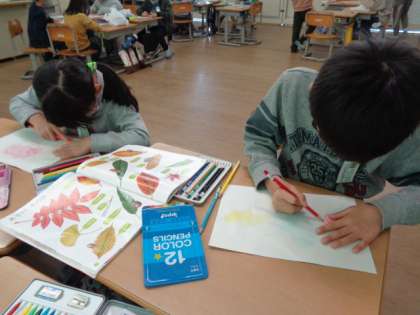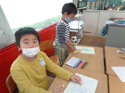 今日は、落ち葉を使って「こすり出し」をしました。初めてやる子も多く「わあ!」と喜んでいました。神保にも、秋のものはたくさんあります。秋の実や葉を集めておきましょう。