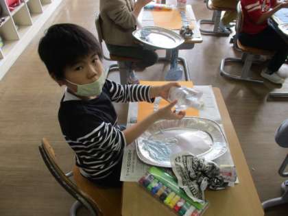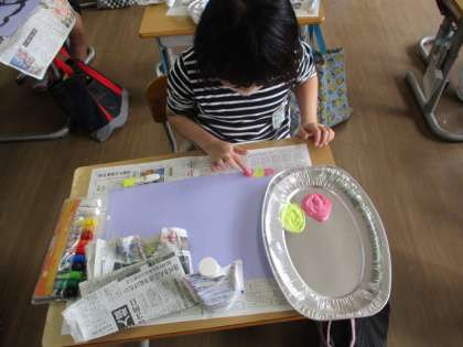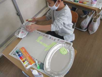 今日はリキッド粘土と絵の具を混ぜ合わせ、指で絵を描きました。とろとろの粘土の触感が新鮮に感じられたようで楽しんで絵を描いていました。