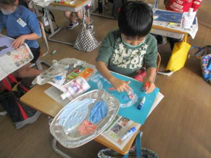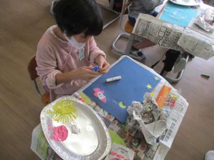 かわいらしい絵がたくさんできました。絵の具が乾くと絵の印象がやわらかく変わるので、完成が楽しみです。