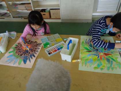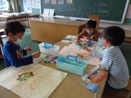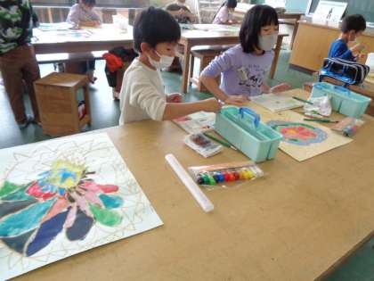 丁寧に色をつくり、塗っています。どれもすてきな世界に一つだけの花になってきました。