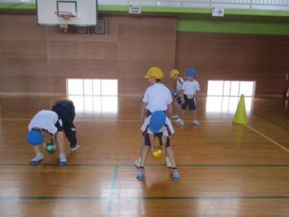 ボール運動では、新しくゲームをしたり、ペアでできるボールを使った遊びをしました。色団でのチームワークが試されるゲームです。今後もいろいろなゲームに挑戦していきます。