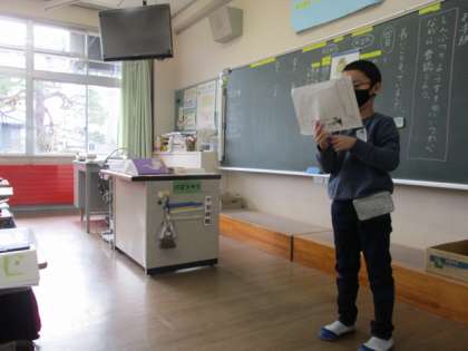 友達の前で発表するときには、がまくんやかえるくんの、待ちに待ったお手紙が手に渡った幸せを表現していました。