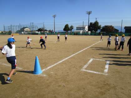 体育科「Tボール」の学習では、ゲームを中心に行っています。バッターに味方が応援したり、守備のメンバー同士で声をかけ合ったり、打つところを狙って打とうとする姿が見られたりするなど、これまでの試合から学んだことを生かしていく姿が見られました。