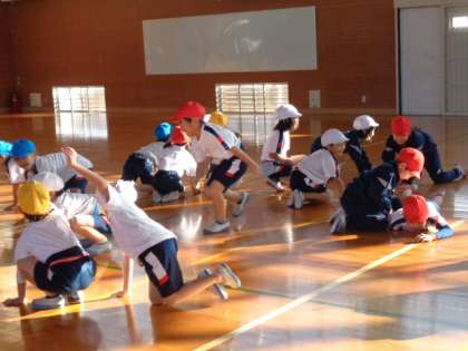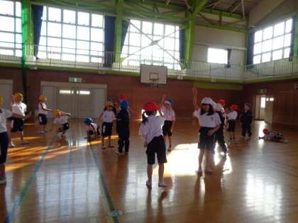 「なりきり遊び」をしました。タンバリンの音の後に言われた動物になりきる遊びです。初めてやりましたが、子供たちはネコやフラミンゴ、ゾウになりきって体いっぱい表現できました。最後に「サル!」と言うと、嬉々として肋木に登っていきました。明日の校外学習で、動物の動きをよく見てきて、また「なりきり遊び」をしましょうね。