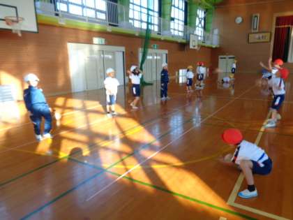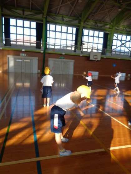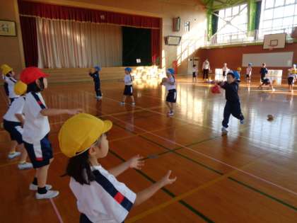 マイボールを使って「その場キャッチ」「キャッチボール」をしました。