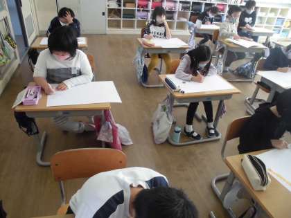 図工の時間では、「わたしの11月の絵」として制作をしています。11月といえばで、言葉をたくさん見つけたり外に出て秋の物や色、様子等を感じたりしました。みんなの思いを詰まった作品が楽しみです。