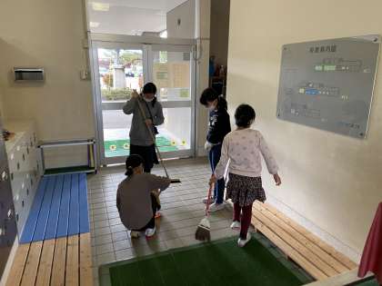 最近の朝ボランティアの様子です。自分でよく考えて行動しています。