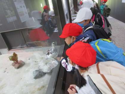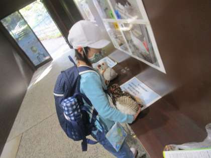 ライチョウを観察できるエリアでは、ライチョウを観察できるだけでなく、実物と同じ大きさのぬいぐるみも置いてありました。持ってみて実際の大きさや手触りを体験していました。