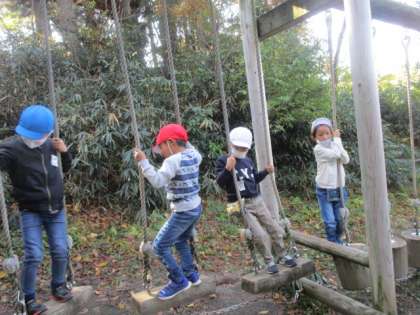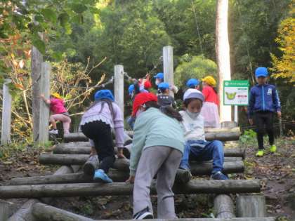 アスレチックエリアでの様子です。たくさんの遊具に子供たちは大はしゃぎで遊んでいました。