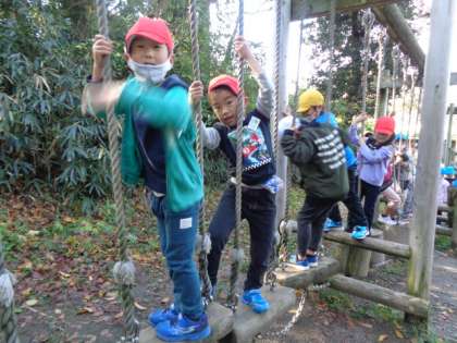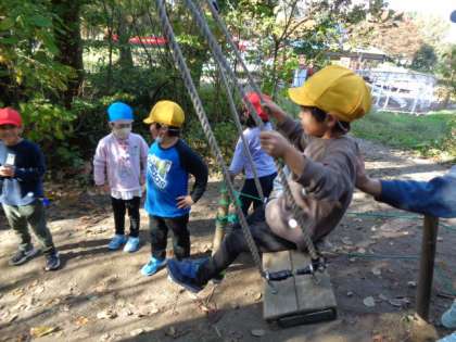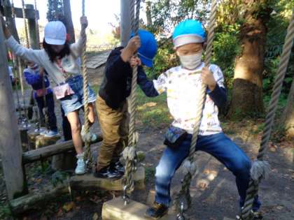 最後はアスレチックで思い切り体を動かして遊びました。「ここ落ちたらマグマね!」と遊びをどんどん自分たちで楽しくしていく子供たちは、とても可愛かったです。