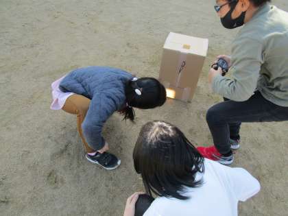 【3年生】理科 はね返した日光が当たったところはあたたかくなるのだろうか 公開日 2020/11/16 更新日 2020/11/16 3年生 理科「太陽の光を調べよう」の学習では、鏡ではね返した日光が当たったところはあたたかくなるかを調べました。予想とは違う結果に驚きの声をあげ、はね返した日光でもあたためる力があることに気付いていました。