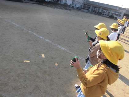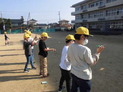 理科では、鏡を使ってはね返った光がどのように進むかを調べました。地面や壁に反射させることで、真っ直ぐ進む事、当たったところが明るいことを実験を通して理解していました。鏡の使い方も安全に気を付けて使うことが出来ました。