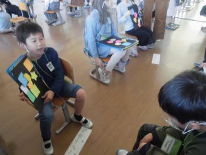 外国語活動では、クイズ大会を通して、友達の事を知ろうとしている3年生。今日は、隣のクラスの人とクイズ大会をしました。空いている席に積極的に動いて、たくさんの友達と関わる姿が見られました。ジェスチャー等が自然と出てコミュニケーションを楽しんでいました。